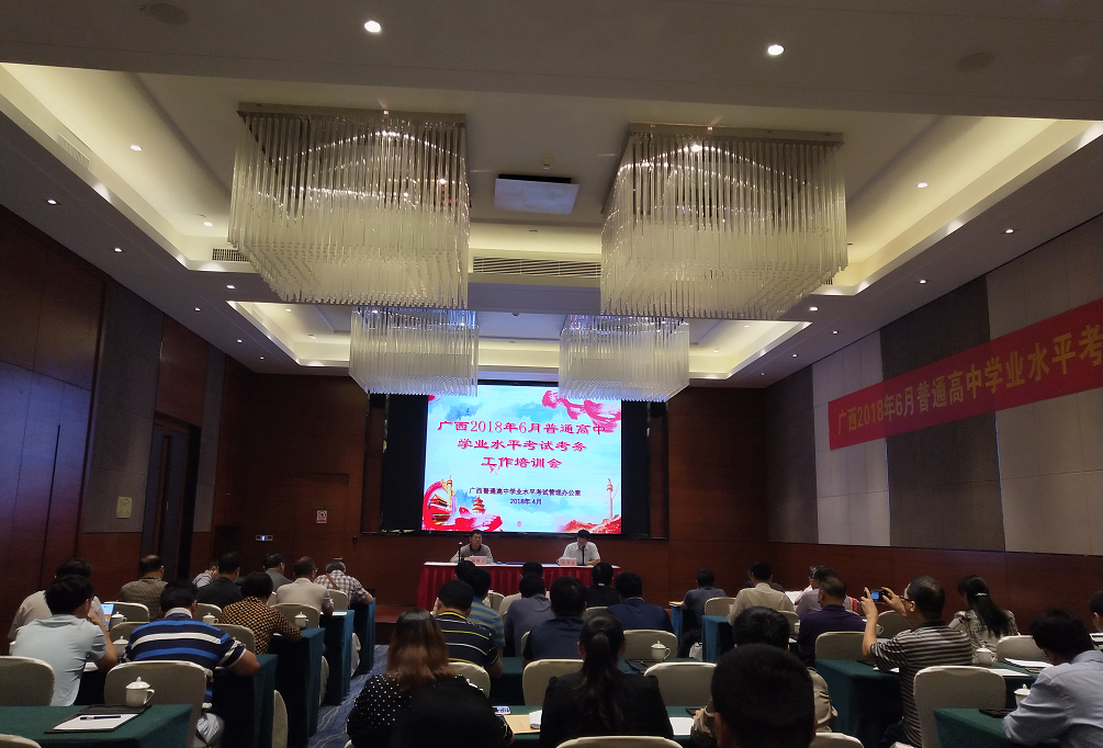 4月25日,2018年6月我区普通高中学业水平考试考务工作培训会在梧州召开。我院学考办主任杨锦兴出席会议并做讲话,学考办韦茂超副处长主持会议。参加会议的有各市招生考试院(招生办)分管学考工作的领导,各市招生考试院(招生办)考务工作人员以及我院学考办全体工作人员。