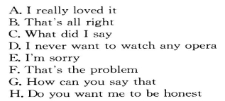 Directions:Pick out appropriate expressions from the eight choices below and complete the following dialogue by blackening the corresponding letter on the Answer Sheet.