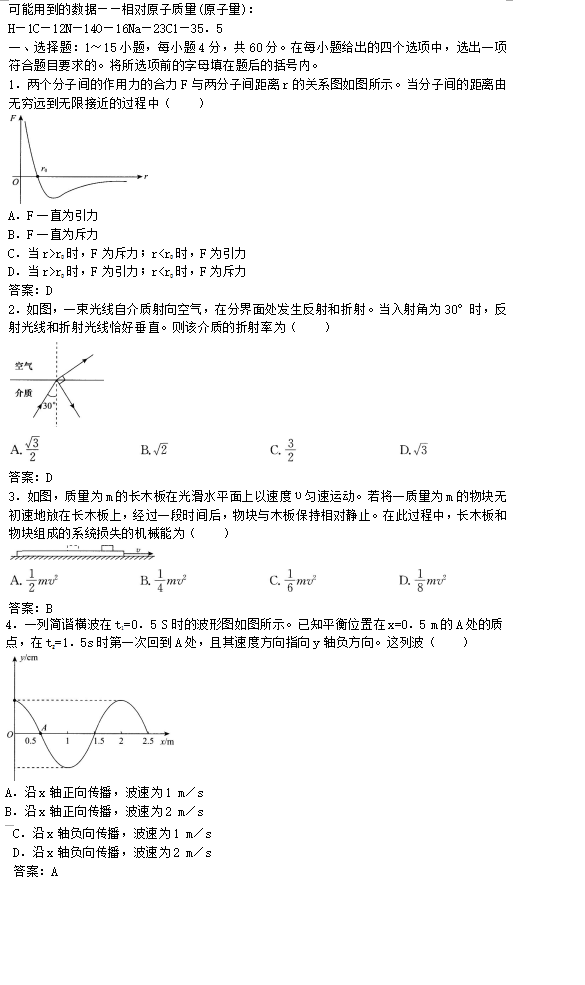 成人高考高起点理化综合考试真题及参考答案(3)