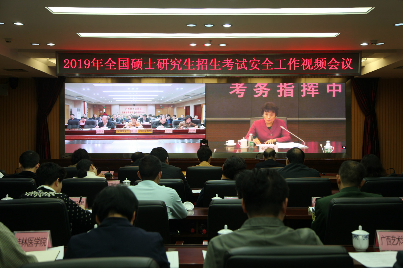 2019年全国硕士研究生招生考试将于12月下旬举行,为确保考试安全平稳顺利进行,11月22日上午,教育部召开2019年全国硕士研究生招生考试安全工作视频会议。教育部副部长林蕙青出席会议并就考试安全工作作动员部署。自治区党委教育工委副书记覃萍,我院院长李清先、副院长涂第东、相关处室负责人及自治区招生考试委员会成员单位、我区14个硕士研究生招生单位代表在广西分会场参加会议。
