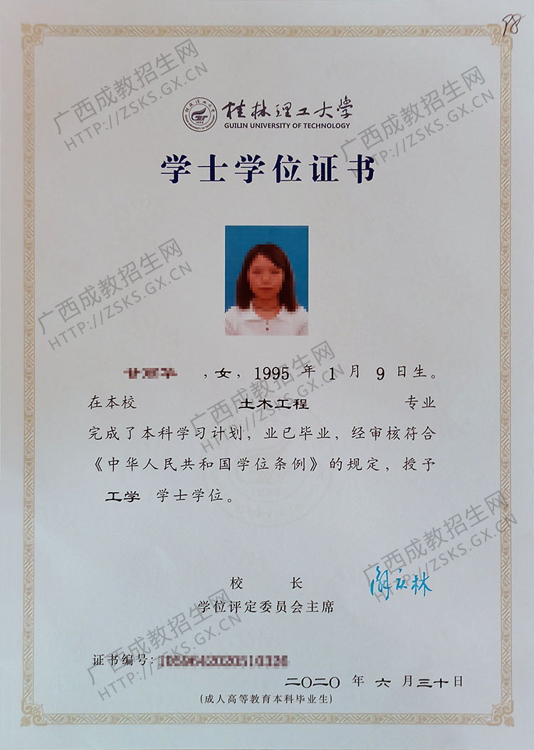 桂林理工大学函授学位证样板